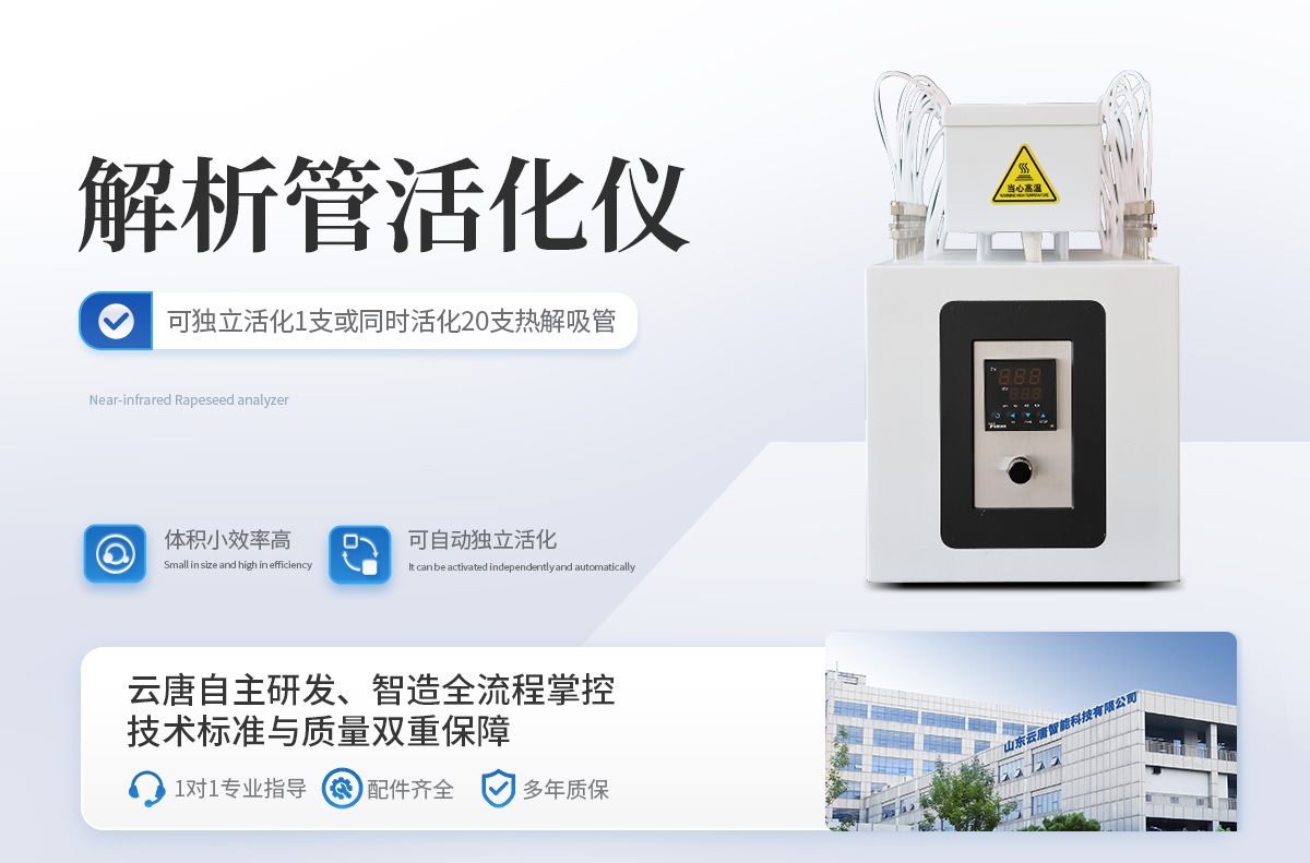 YT-J-20H解析管活化儀是一款自主研發(fā)生產能與各類熱解析儀器配套使用的前處理設備。該產品具有體積小、效率高、操作簡單等特點備受廣大用戶的青睞。