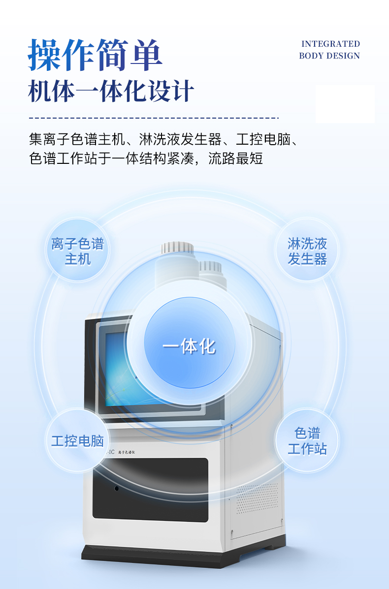 | 我們公司作為離子色譜儀器市場的新業(yè)態(tài),一直致力于為用戶提供更快捷、優(yōu)質(zhì)的儀器,以保障實驗室的建設(shè)和運行。始終堅持以客戶為中心,為有檢測需求的客戶服務(wù)。物美價廉、響應(yīng)迅捷、服務(wù)全面。 | 全新一代離子色譜儀,采用12.1吋純平工控電腦一體機設(shè)計(用戶不需要配電腦),實時顯示儀器運行參數(shù)和狀態(tài);一鍵啟動電動閥進樣,一鍵完成儀器開關(guān)機、維護等操作,一鍵調(diào)閱儀器操作教程,方便快捷。 | 離子色譜儀核心零部件自主研發(fā)、自主知識產(chǎn)權(quán)可控。采用一體化設(shè)計,集離子色譜主機、淋洗液發(fā)生器、工控電腦、色譜工作站于一體,結(jié)構(gòu)緊湊,流路*短,對流路造成的峰型擴展有很好的改善。一體化恒溫箱:色譜柱、抑制器、電導(dǎo)池、放大電路都處于同一恒溫系統(tǒng),改善了電導(dǎo)檢測器的溫飄和基線噪聲。內(nèi)置多處漏液報警器和缺水報警器,全方位安全監(jiān)控。由PLC控制的各個部件統(tǒng)一到電腦顯示屏的集中軟件控制系統(tǒng),操作方便,鼠標(biāo)所見即所控。 |