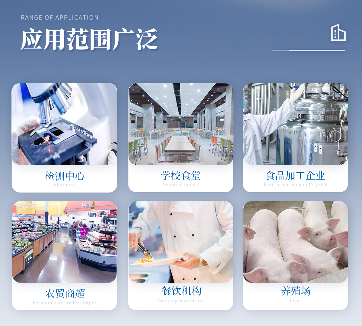 全自動農(nóng)獸藥殘留檢測儀可對各種蔬菜水果中有機磷和氨基甲酸酯類農(nóng)藥殘留;各種肉類水產(chǎn)食品中瘦肉精激素類殘留,抗生素殘留,獸藥殘留,水產(chǎn)品藥物殘留等百余種項目進行快速檢測。該設(shè)備廣泛應(yīng)用于蔬菜批發(fā)市場、超市、商場、食藥監(jiān)等部門的蔬菜和水果中的農(nóng)藥殘留檢測。