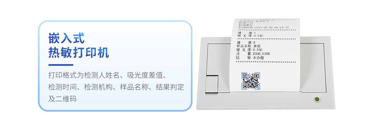 5、配備新一代嵌入式熱敏打印機(jī),可選擇手動(dòng)打印或者自動(dòng)打印,檢測(cè)完成可自動(dòng)打印檢測(cè)報(bào)告和二維碼。