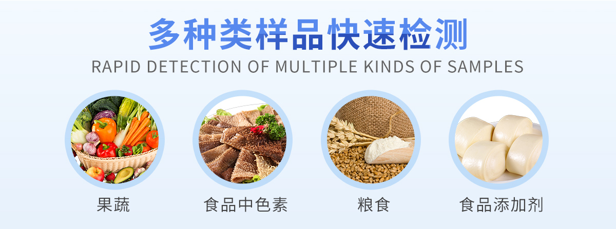 可快速檢測(cè)各類食品中的亞硝酸鹽、二氧化硫、甲醛、吊白塊、雙氧水、硼砂、農(nóng)藥殘留、乳及乳制品中蛋白質(zhì)、硝酸鹽、重金屬鉛的含量,儀器預(yù)留其他項(xiàng)目檢測(cè)程序和端口,根據(jù)日后需求可方便的自主增加檢測(cè)項(xiàng)目。