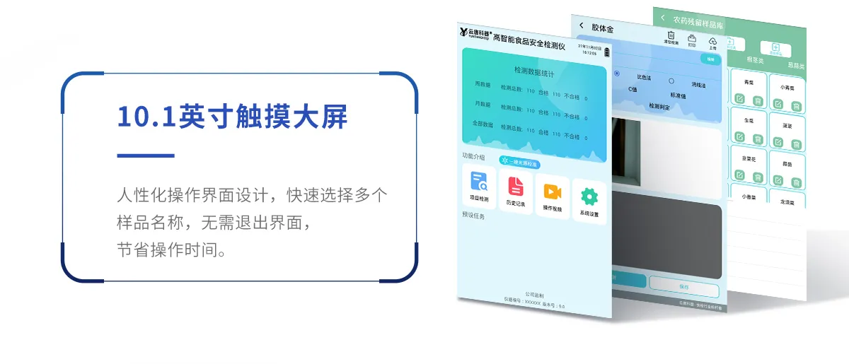 2、儀器功能包括:分光光度模塊、膠體金檢測模塊、新型農(nóng)殘檢測模塊、數(shù)字化管理模塊、無線通訊模塊等,可以滿足同一軟件下實現(xiàn)所有檢測項目的檢測,并在同一窗口展示檢測結(jié)果。