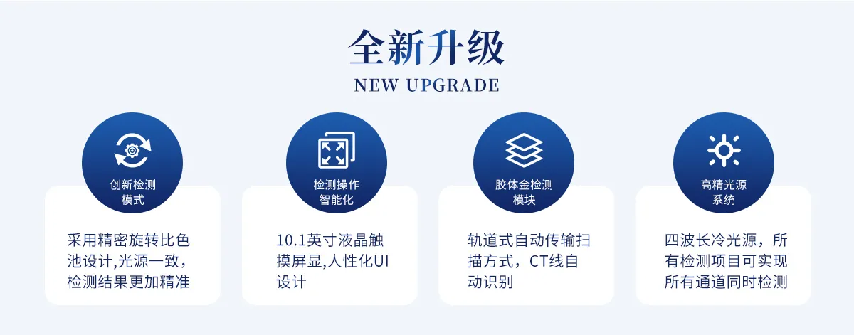 軌道式自動傳輸掃描方式,可實時顯示金標卡實時圖像,系統(tǒng)自動分析并呈現(xiàn)出CT曲線圖,CT線自動識別,無需手動調(diào)整,完成檢測后自動退出檢測卡。