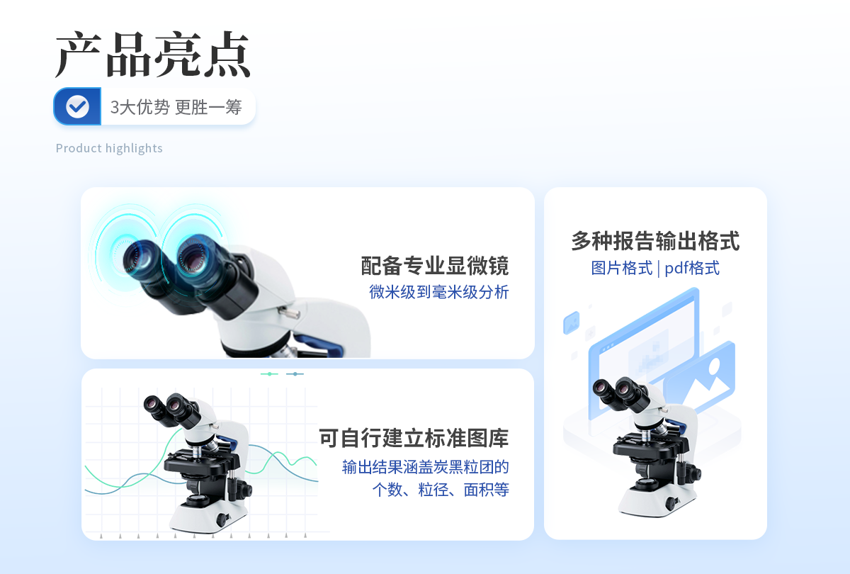 | 1、采用專業(yè)圖像分析法由計算機完成炭黑分散度等級的判定,檢測精度高。 | 2、對目標(biāo)炭黑粒徑可從微米級到毫米級進行分析 | 3、 配備專業(yè)顯微鏡,配以500萬CMOS圖像傳輸器 | 4、可單張保存圖像,圖像大小由640*480,1024*768,1280*1024,2592*1944四種大小可供選擇 | 5、豐富的圖像處理功能,滿足多種圖像處理需要 | 6、軟件具有自動和手動兩種方式進行炭黑圖像分割 | 7、軟件可滿足對局部分析的要求 | 8、配備測微標(biāo)尺,可進行像素點尺寸校準(zhǔn),并且軟件具有移動標(biāo)尺功能,可進行任意兩點距離測量 | 9、客戶可以自行建立標(biāo)準(zhǔn)圖庫 | 10、輸出結(jié)果涵蓋炭黑粒團的個數(shù)、粒徑、面積等,并可以數(shù)據(jù)報表和excel的形式進行輸出 | 11、提供圖像灰階分布圖、粒子徑分布圖、粒度分布圖 | 12、報告結(jié)果包括:樣品名、標(biāo)準(zhǔn)名、原始圖像、灰階圖等。報告輸出格式多樣,可以選擇圖片格式或pdf格式進行保存。 | 13、軟件試用各種主流操作系統(tǒng),與win7/win10/winXP等有很好兼容性。 | 14、采用usb2.0數(shù)據(jù)接口,可適配多種采集設(shè)備(如:攝像頭或數(shù)碼相機) |