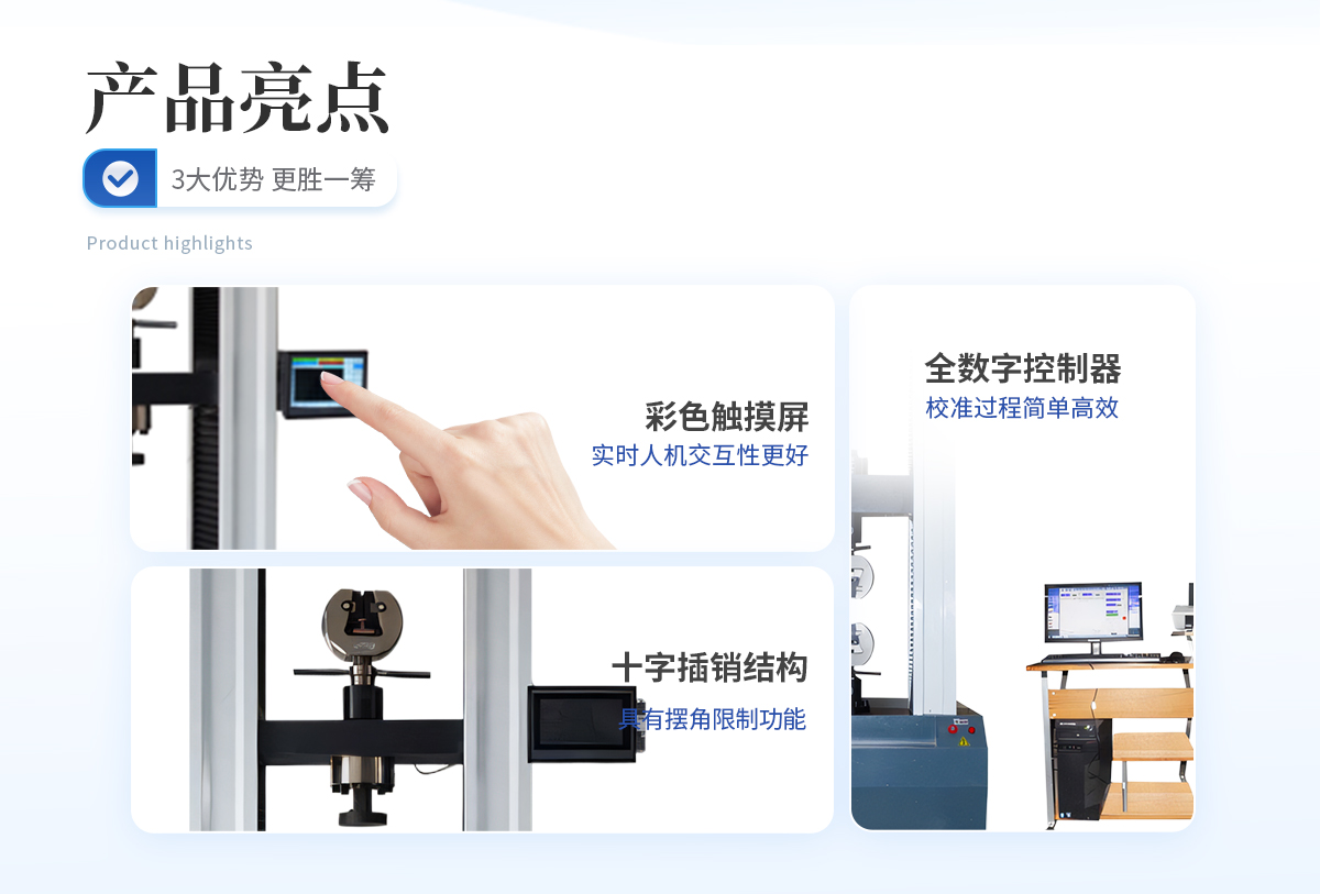 該系列萬能試驗機適用于橡膠、塑料、紡織物、防水材料、電線電纜、網繩、金屬絲、金屬棒、金屬板、各種金屬、非金屬及復合材料的力學性能指標的測試,如各種拉伸試驗,通過更改附具便可輕松完成壓縮、彎曲、剪切、撕裂、剝離、穿刺等試驗。7寸TFT彩色觸摸屏,直接輸入試驗參數,中英文操作界面層層提示,用戶無需操作手冊即可輕松操作。本拉力試驗機具有試驗力數字顯示,試驗速度連續可調,試樣拉斷自動停機,峰值保持等功能,試驗結果完全符合國家相關標準的要求。