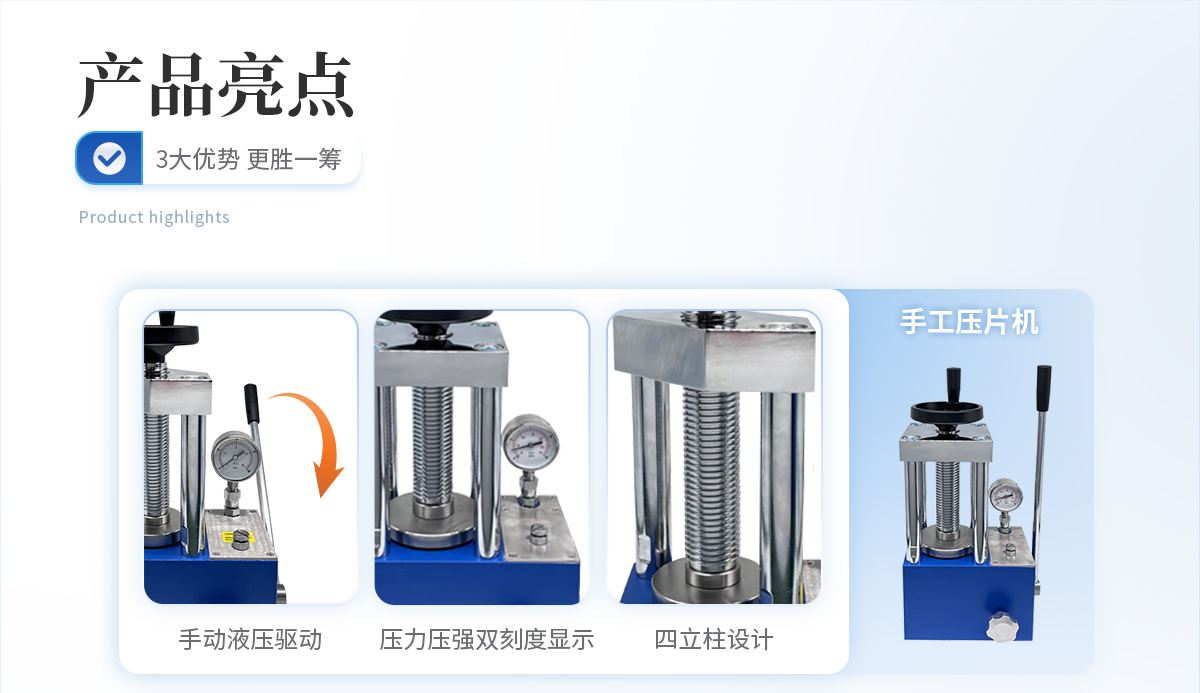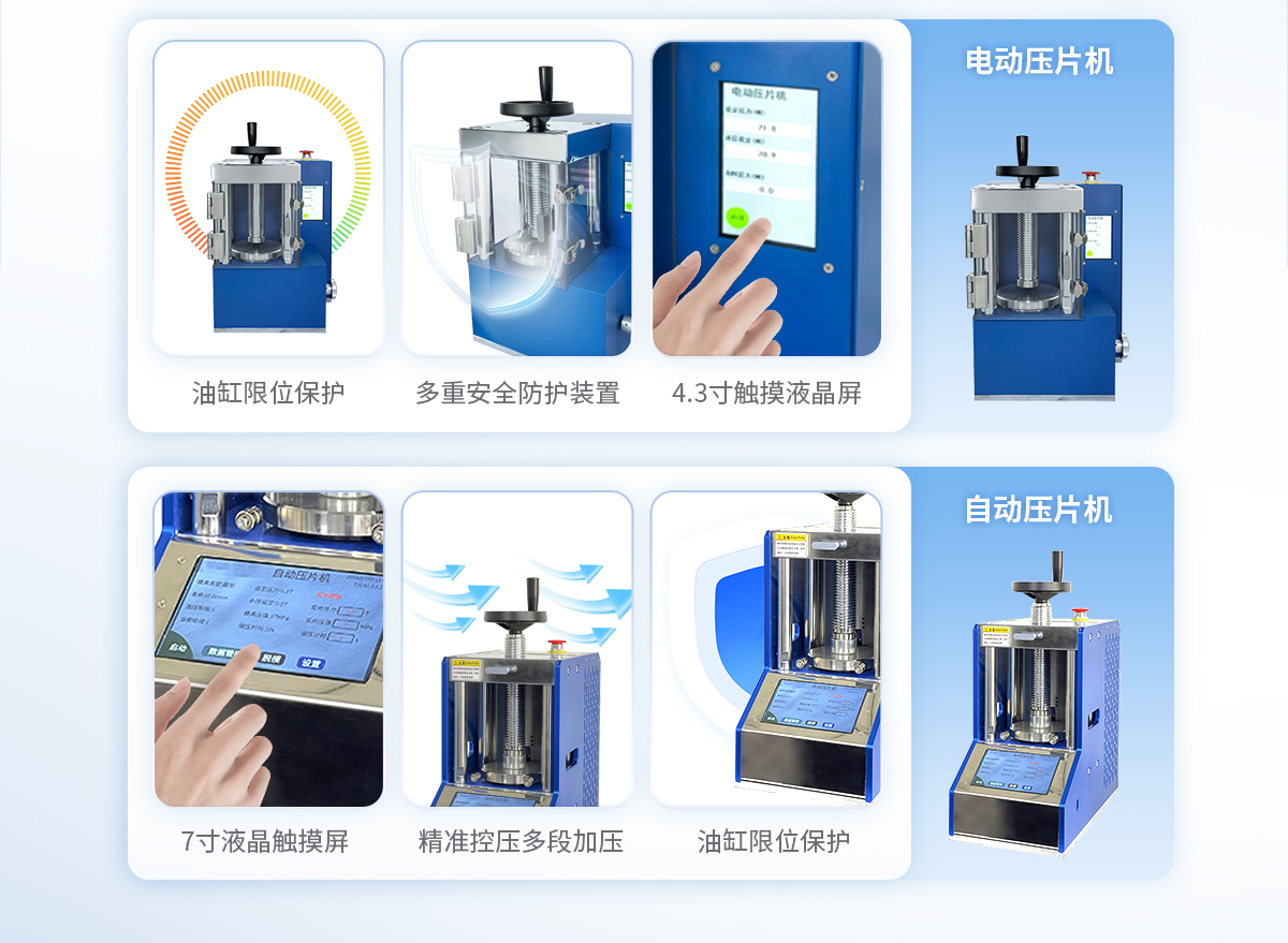 該機相比手動壓片機,工作效率大大提高,4.3寸觸摸液晶屏直接顯示壓力噸位;配以特定模具,可將各種粉末樣品壓制成試片用于科學研究分析檢測等,也可作為普通壓力機使用,應用極其廣泛。